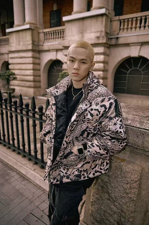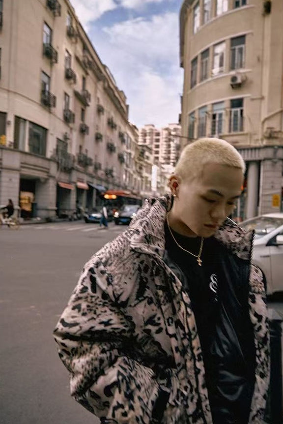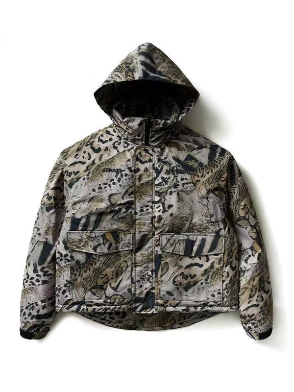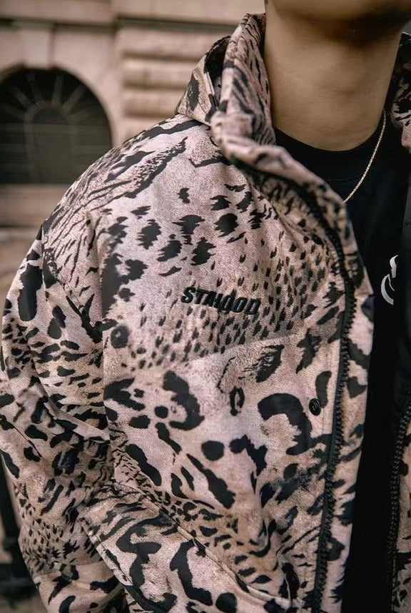 REMEDYxSTA Leopard Print Hooded Cotton Coat