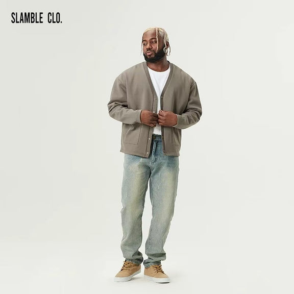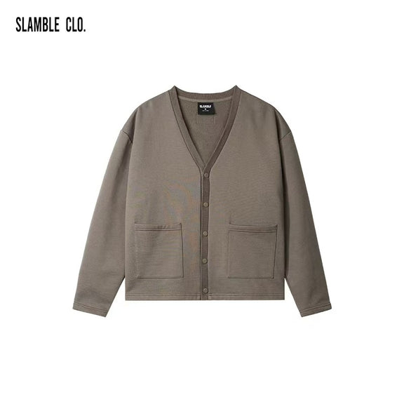 SLAMBLE Knitted Casual Solid Color V-neck Jacket