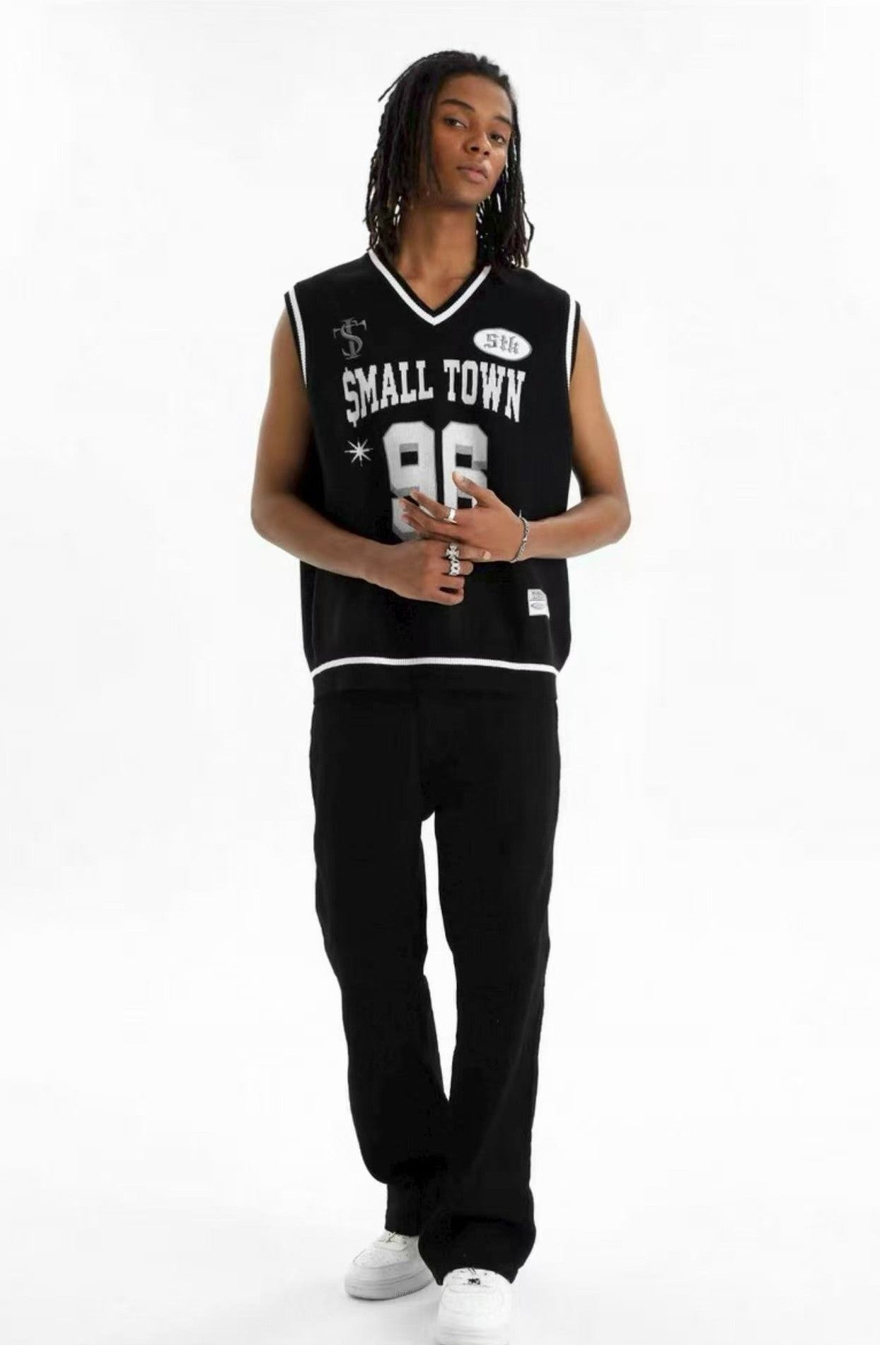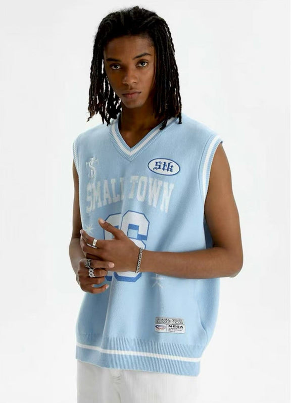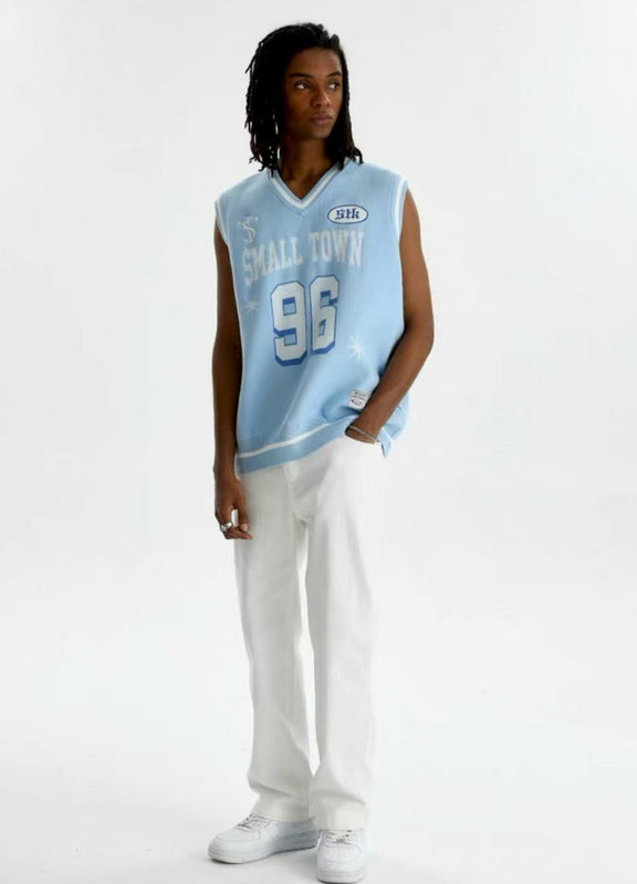 STK 96 Number Embroidered V-Neck Knit Vest