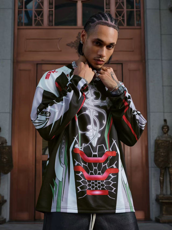 STK High-Density White Ink Direct Print Motorcycle Long-Sleeve T-Shirt