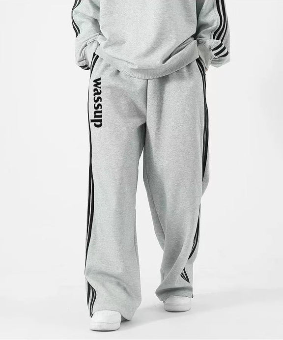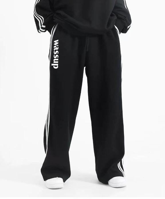 WASSUP Color Matching Wide Leg Track Pants